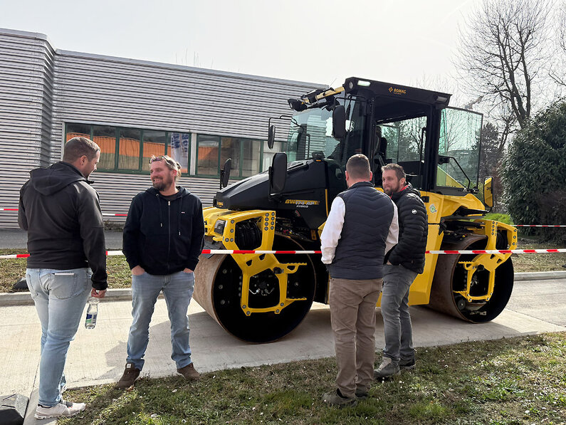 Im Fokus standen der neue BOMAG BF 350 C-5 Fertiger sowie die BOMAG BW 174 AP-5 AM Hybrid Walze mit Notbremsassistent. Neben spannenden Maschinenpräsentationen blieb auch Zeit für persönliche Gespräche – und natürlich für ein gemeinsames Mittagessen.