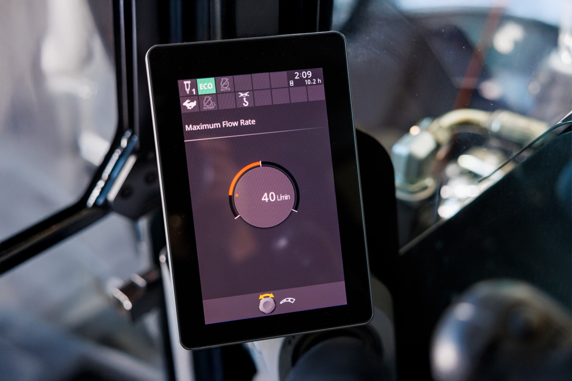 Mit dem Hitachi Tool Control System lassen sich Ölmenge und Öldruck direkt über den Monitor individuell einstellen. Bis zu neun Anbaugeräte können gespeichert und optimal konfiguriert werden. Werkseitig ist die Maschine bereits für Hammer-, Rotations-, Schwenk- sowie Schnellwechslerhydraulik vorbereitet.