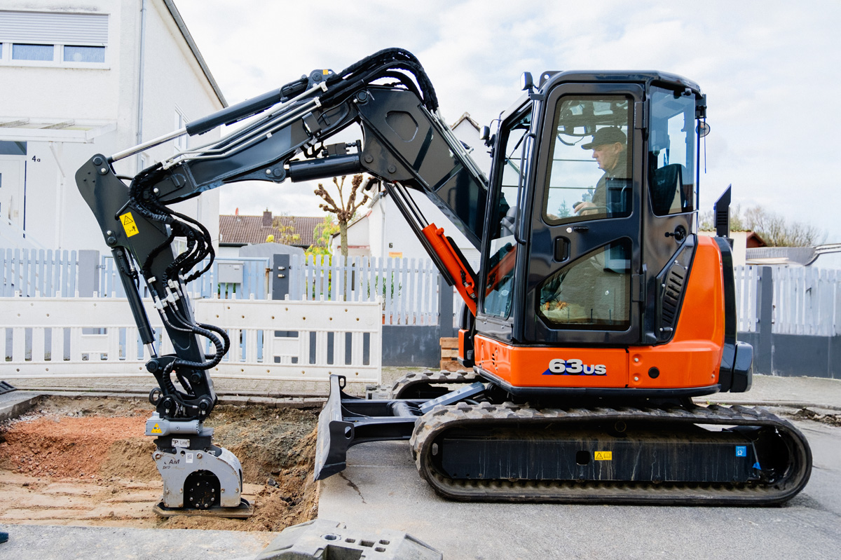 Als Kurzheck-Modell bietet der 6-Tonnen-Kompaktbagger optimale Wendigkeit in beengten Arbeitsbereichen. Ob innerstädtische Baustelle, Garten- und Landschaftsbau oder Werkleitungsarbeiten – die kompakte Bauweise ermöglicht präzises und sicheres Arbeiten.