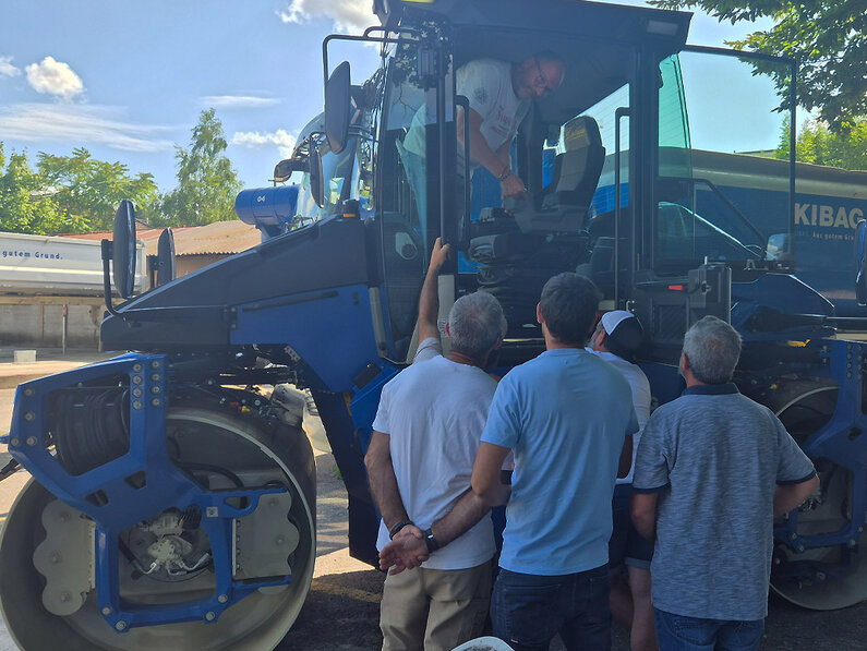Die teilnehmenden Bauführer, Poliere und Walzenführer konnten sich intensiv mit den Funktionen, dem Hybrid‑Antrieb und den Assistenzsystemen vertraut machen.