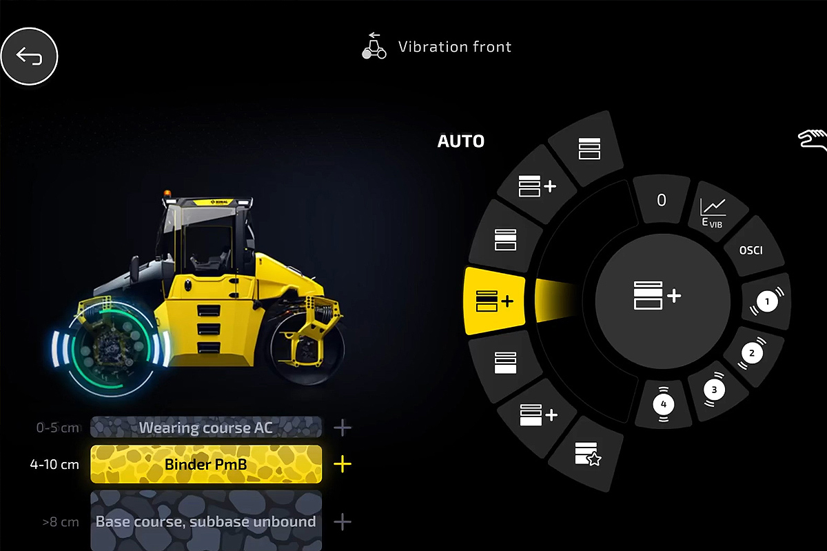 Die schemelgelenkten Walzen sind mit dem Verdichtungssystem „Asphalt Manager“ ausgerüstet. Diese hochentwickelte Technologie macht Verdichtung smarter, schneller und effizienter – mit maximaler Qualität und Bedienerfreundlichkeit, gleichmässiger Verdichtung, weniger Überfahrten und ohne Schaden am Belag. In Kombination mit dem Hybrid-Antrieb können bis zu 20 % Kraftstoff und CO₂ eingespart werden.