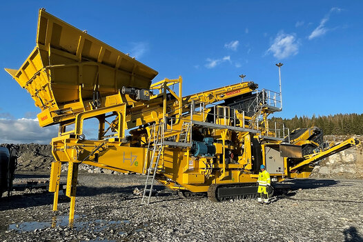 Le modèle H6e à entraînement électrique et crible secondaire à trois étages de 8,1 m2 traite des matériaux de 38 à 215 mm.