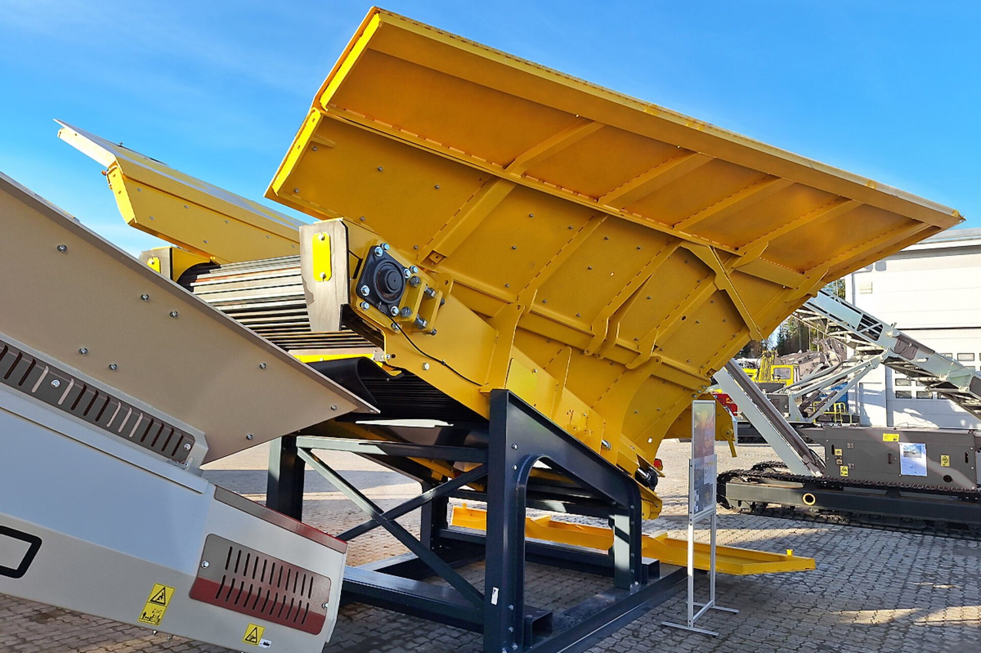 La trémie A6 assure un flux régulier de matériaux en tant que stockage intermédiaire entre deux concasseurs. Grâce à sa grande capacité, elle peut également être alimentée directement par une chargeuse sur pneus. Elle assure ainsi un approvisionnement régulier des installations en aval et la chargeuse sur pneus peut effectuer d'autres tâches pendant ce temps.